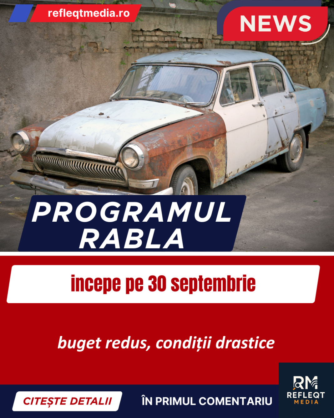 Programul Rabla 2025 va debuta pentru persoane fizice pe 30 septembrie, ora 10.00, marcând cea mai târzie lansare din istoria programului. Administrația Fondului pentru Mediu (AFM) a anunțat că bugetul total a fost redus drastic, la 200 de milioane de lei, de trei ori mai puțin decât propunerea inițială din iunie.