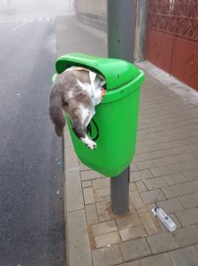 Cineva a aruncat un cadavru de pisica intr-o pubela destinata gunoaielor de pe domeniul public.