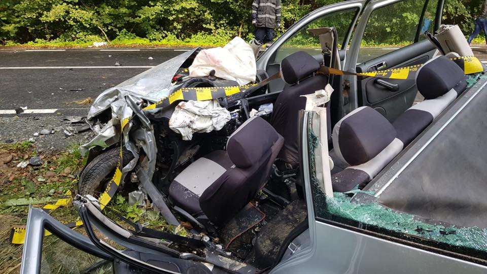 Mașina în care se aflau a fost acroșată de un autovehicul care a pătruns pe contrasens după ce șoferul acestuia, neadaptând viteza la carosabilul umed, a pierdut controlul asupra volanului într-o curbă.