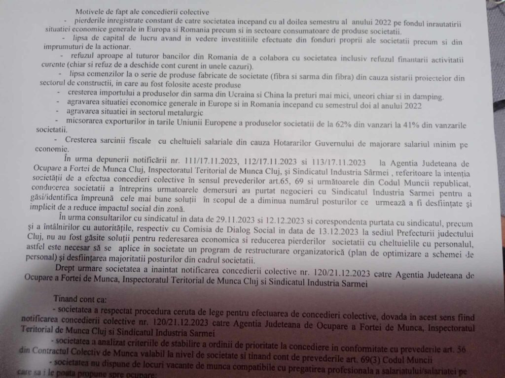 Cei 234 de angajați ai firmei Industrial Steel Wires Câmpia Turzii SRL au primit astăzi preavizele de concediere, urmând ca – în cel mai scurt timp – să rămână pe drumuri.