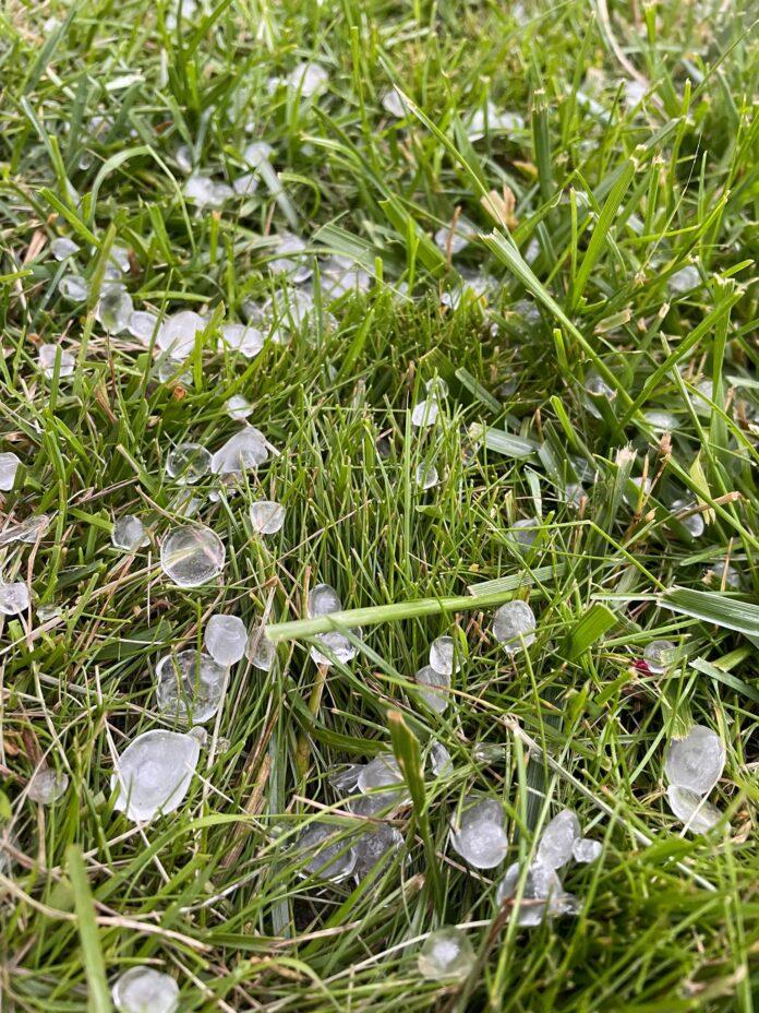 După cum se vede, „boabele de gheață” sunt aproape cât cireșele, iar dacă ar fi căzut mai mult timp, ar fi făcut prăpăd.