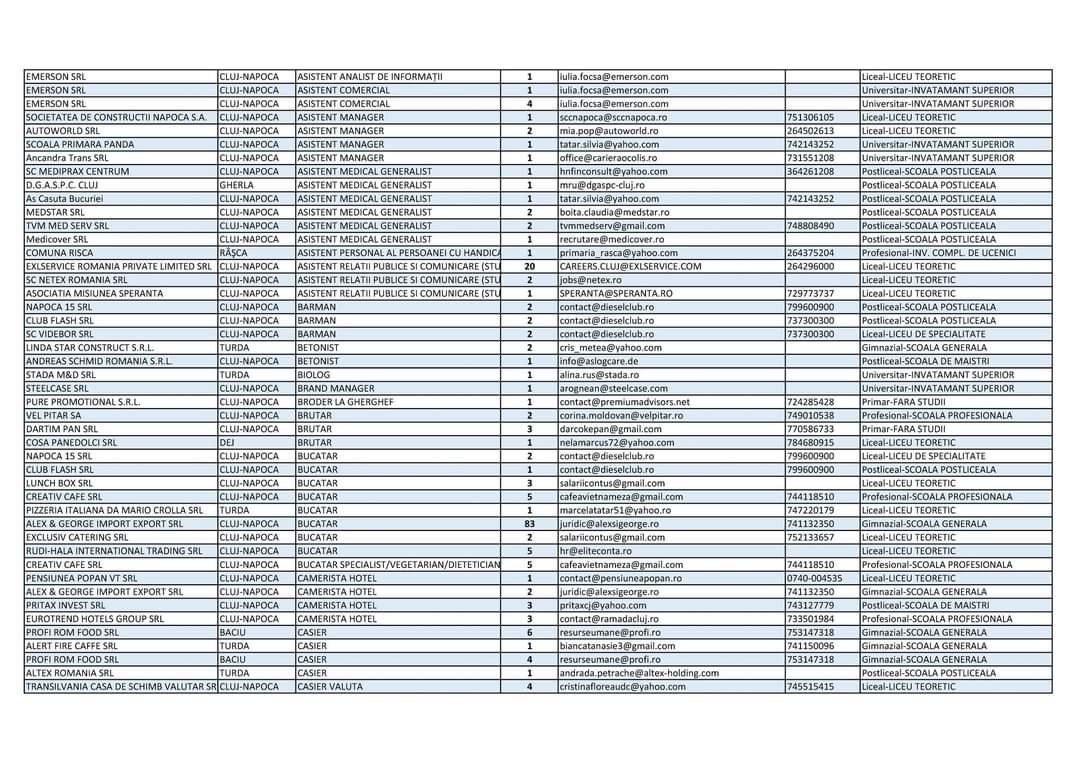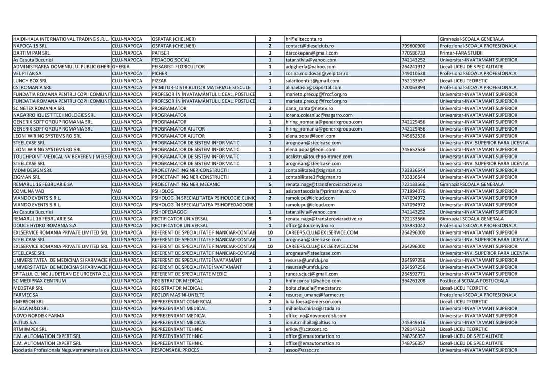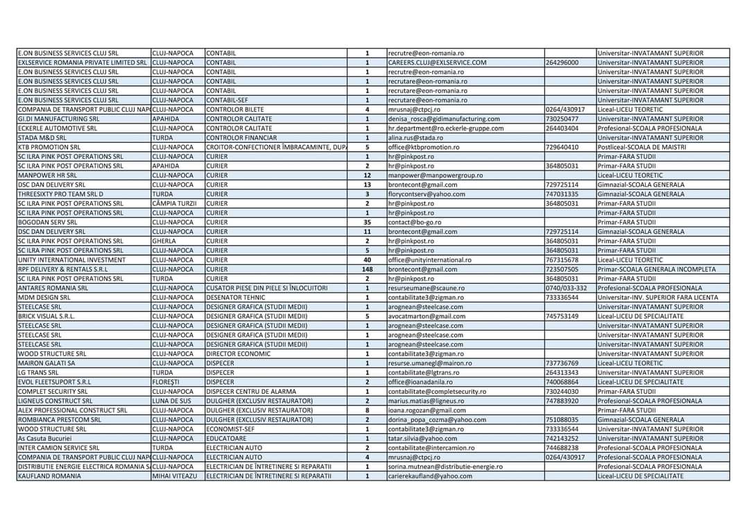 👉 In plus, regasiti mai jos posturile scoase la concurs de catre institutiile publice din judetul Cluj, lista actualizata zilnic.
