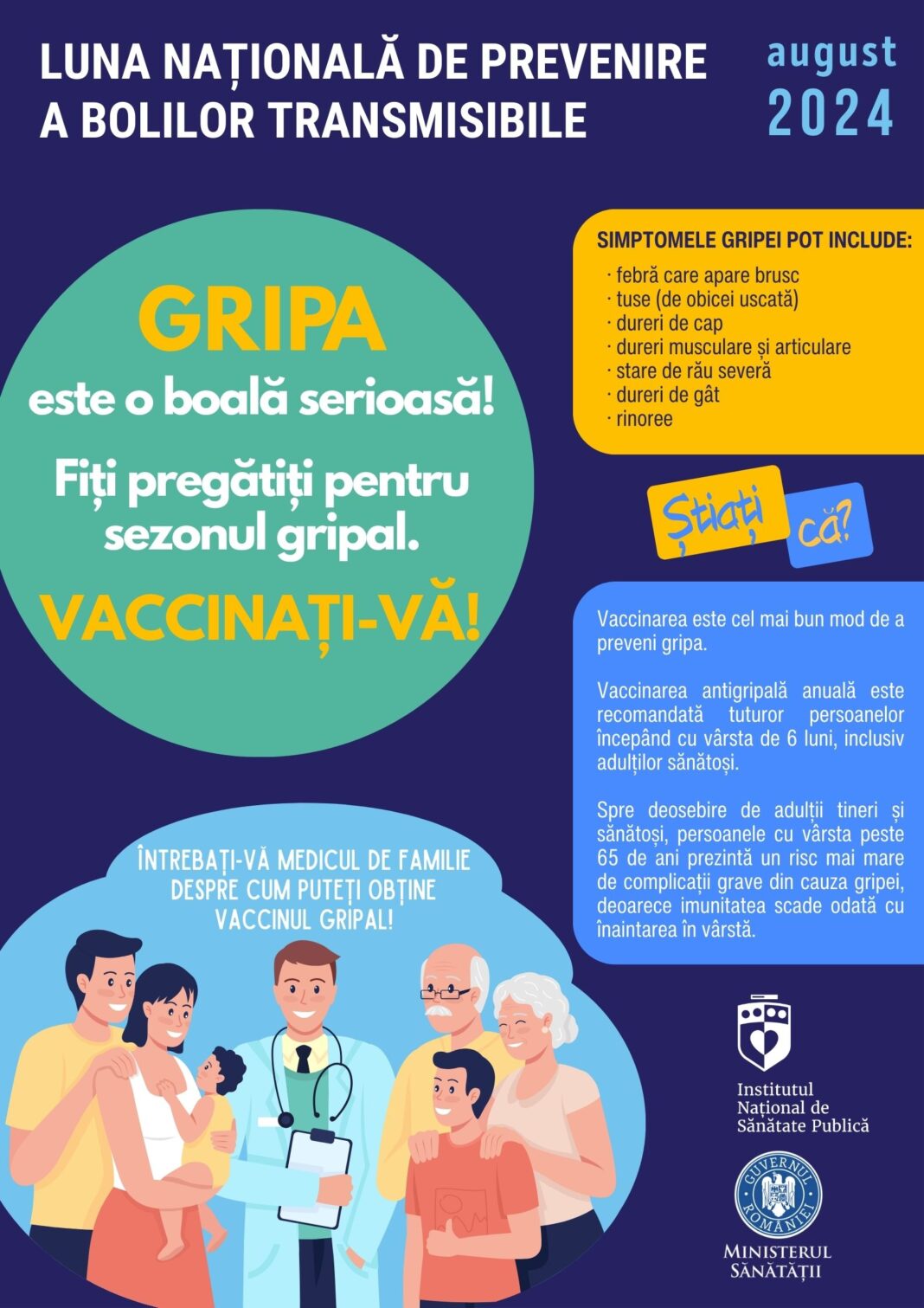 Pe teritoriul național, sub sloganul „Vaccinarea salvează vieți!”, în luna august Institutul Național de Sănătate Publică în parteneriat cu direcțiile de sănătate publică, desfășoară campania de informare dedicată prevenirii bolilor transmisibile.