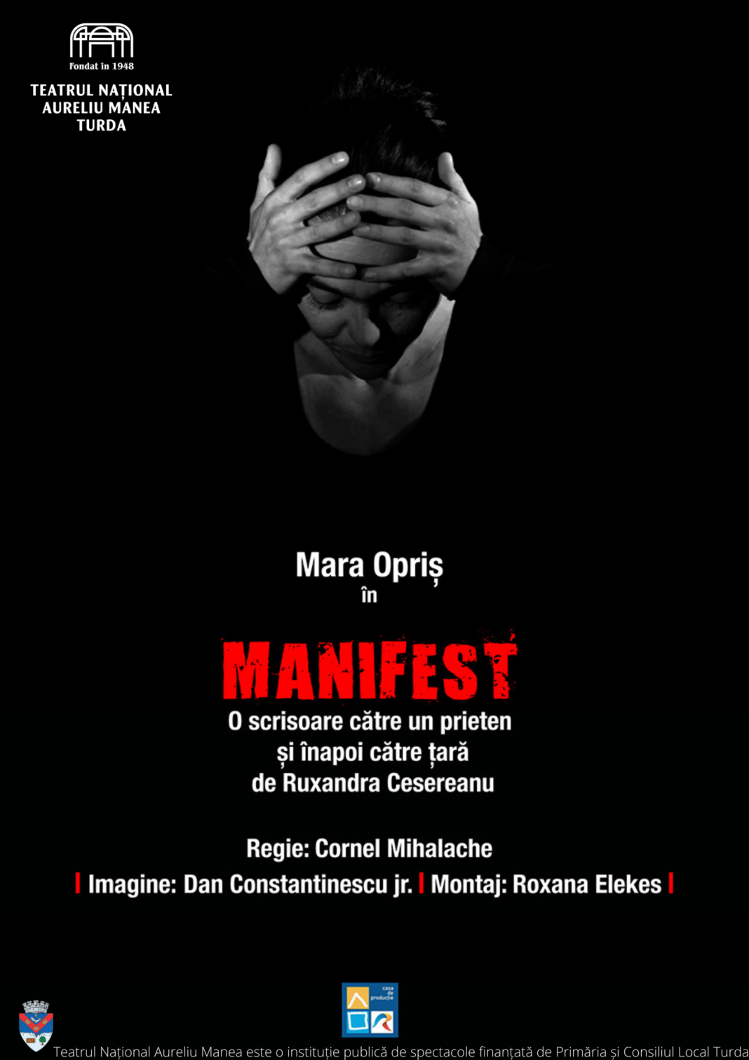 Festivalul Internațional de Teatru Turda aduce filmul premiat UNITER, „Scrisoare către un prieten și înapoi către țară – MANIFEST”. Proiecția acestuia va avea loc luni, 28 iunie, de la ora 20:00, în Sala Mare a TNAMT, fiind urmată de o sesiune de discuții în prezența actriței Mara Opriș.