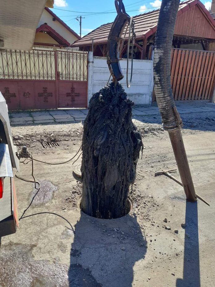 ➡ Pe parcursul intervențiilor, după cum se poate observa și în poze, s-au scos din canalizare cantități impresionante de deșeuri textile și alte materiale care nu au ce căuta în rețeaua de canalizare publică.