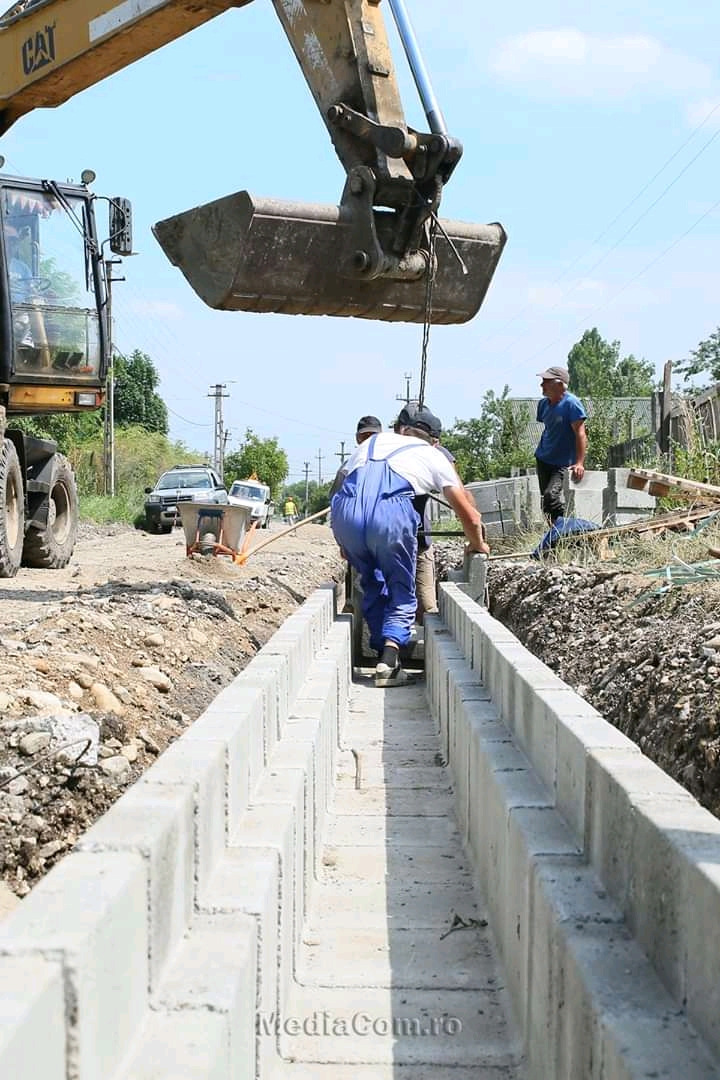 Fundația carosabilului a fost stabilizată, reabilitarea rețelei de apă potabilă, canal menajer și gaz au fost finalizate, iar de astăzi a început realizarea rigolelor de captare a apei pluviale.
