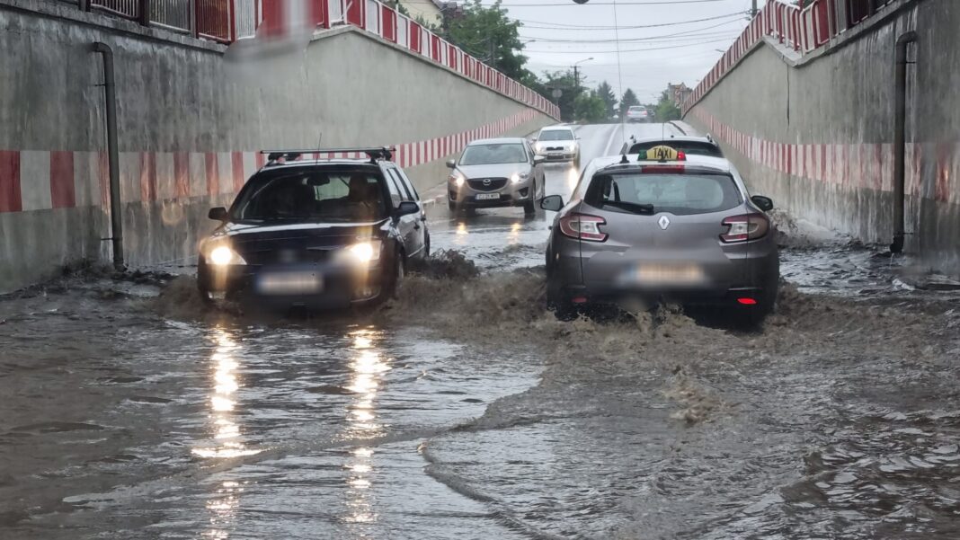 După o ploaie de 3 ore, fără cantități însemnate de căderi de apă, pasajul a devenit aproape impracticabil pentru șoferi.