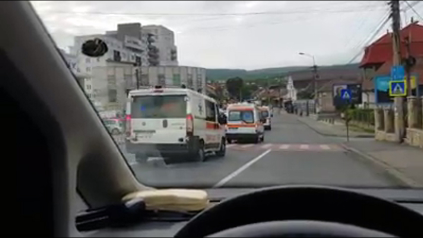 Un șofer clujean a captat pe camera de la telefon un alai de ambulanțe care a trecut prin Cluj Napoca, având semnalele acustice și luminoase în funcțiune, deși nu erau în misiune.
