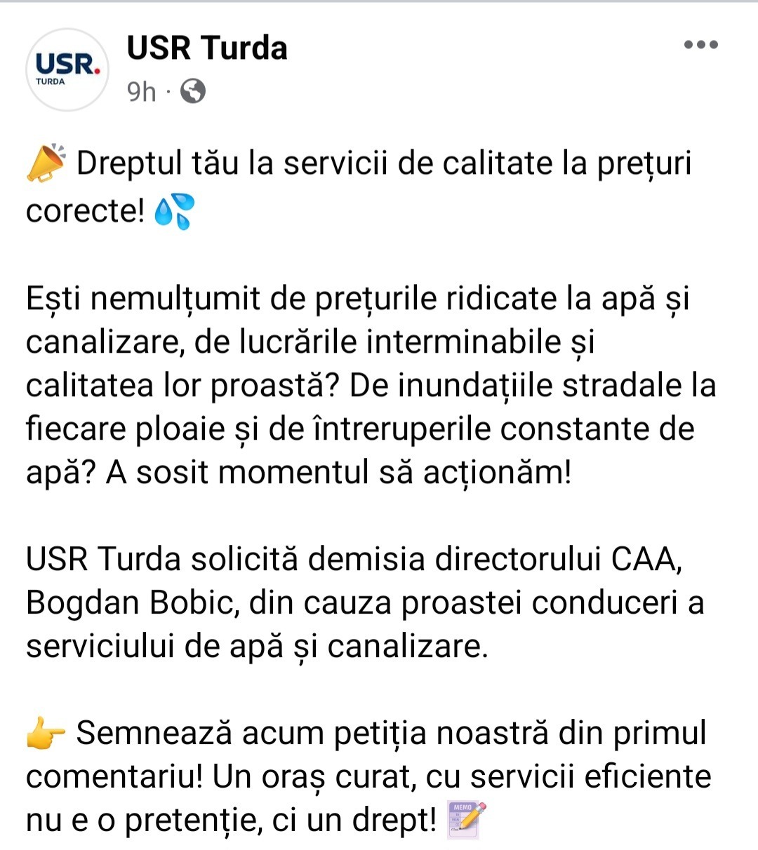 Ultima lor gaselnita a fost sa initieze o… petitie, prin care cer “demisia lui Bogdan Bobic”, directorul general al Companiei de Apa Aries.
