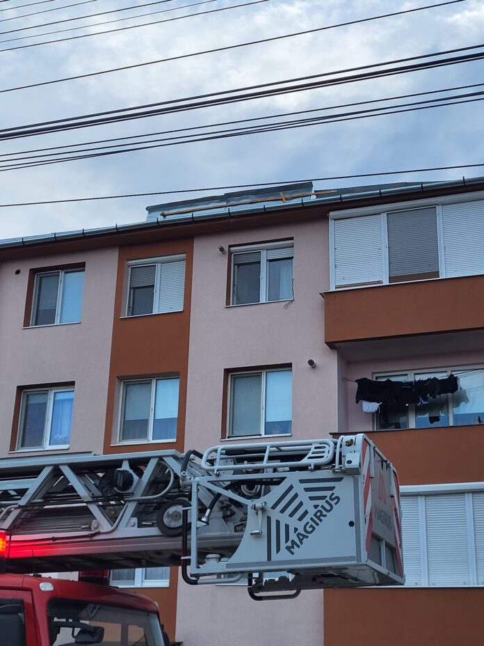 O bucata de acoperis din tabla s-a desprins, existand riscul sa cada peste pietoni sau autoturismele larcate.