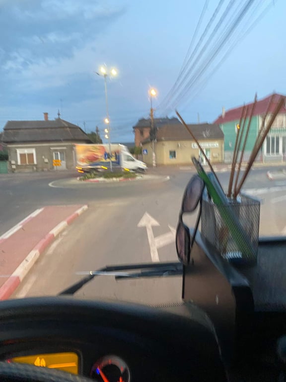 Din fotografie se vede cum șoferul unei camionete a intrat pe contrasens, în sensul giratoriu, punând în pericol traficul rutier și încălcând vreo 2/3 din Codul rutier.