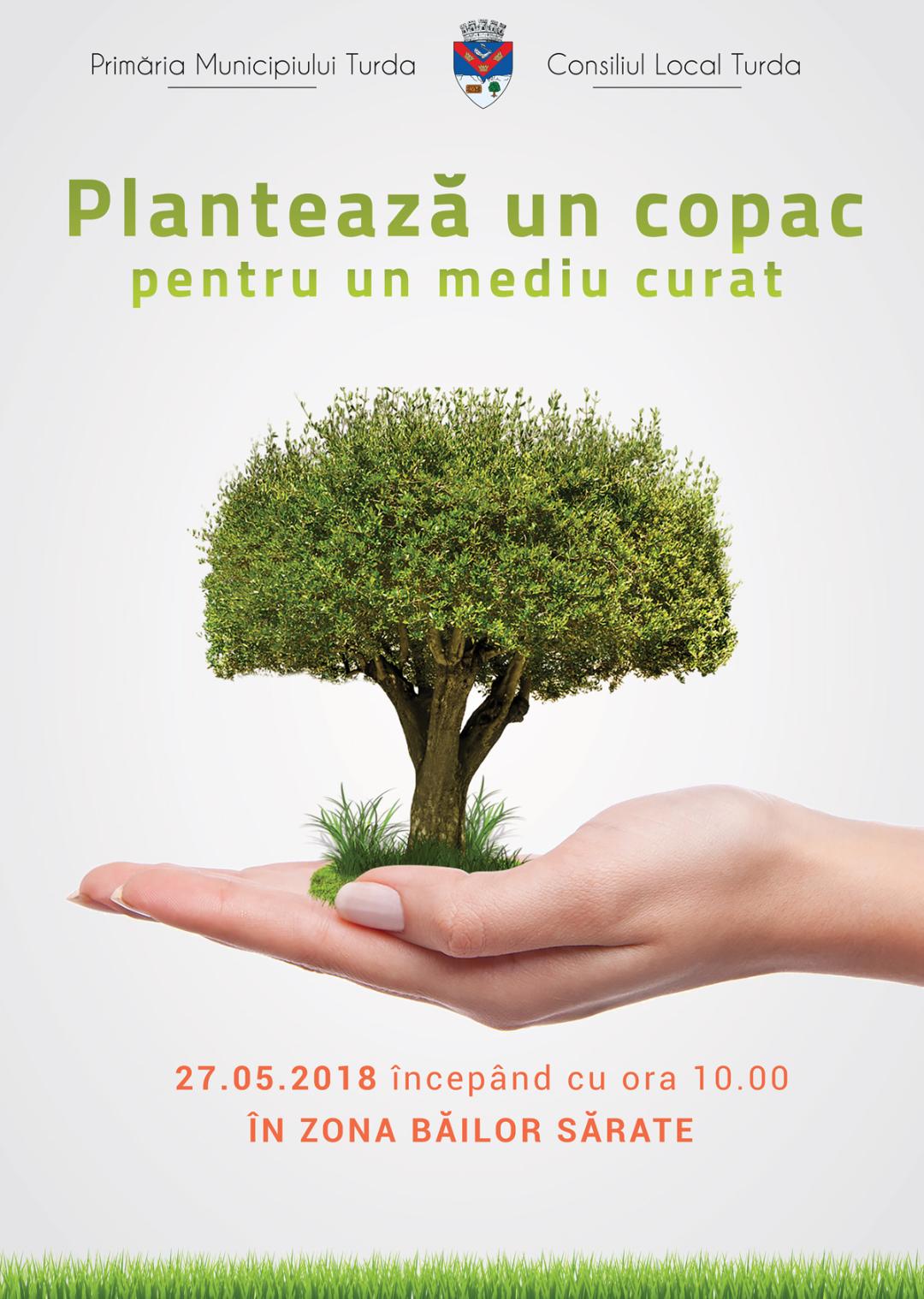 Primăria Municipiului Turda vă invită în data de 27.05.2018, începând cu ora 10.00, la actiunea de plantare de puieți forestieri în zona Băilor Sărate.