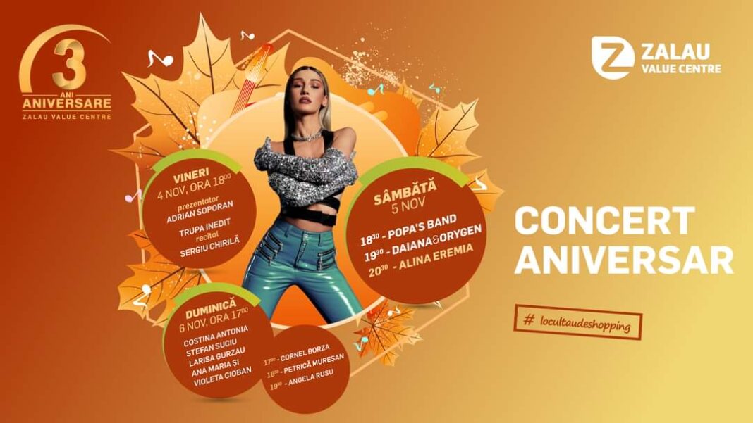 Te așteptăm în perioada 4-6 noiembrie, în parcarea #ZalăuValueCentre să cântăm împreună alături de super artiști👇:
