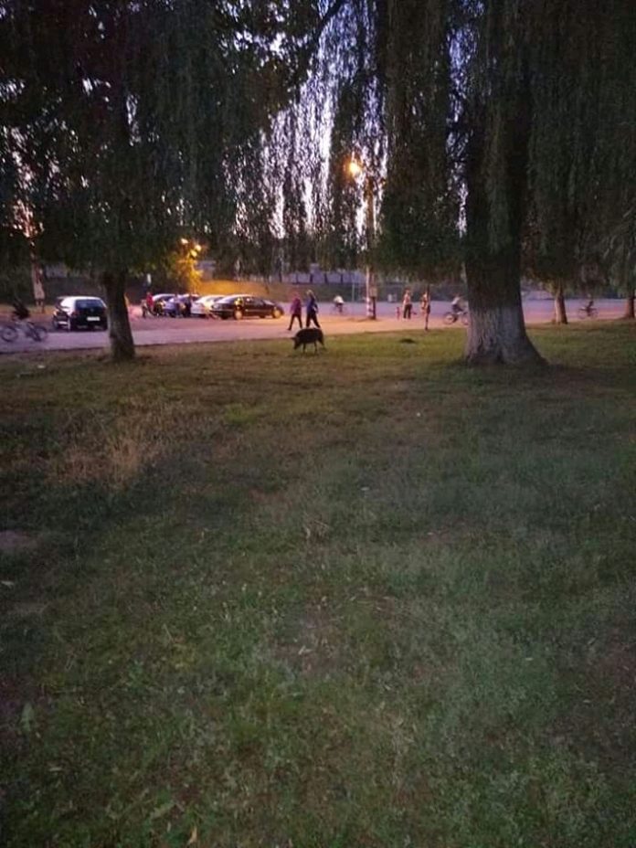 Un internaut a postat o noua invazie a porcilor domestici in Parcul Municipal din Campia Turzii.