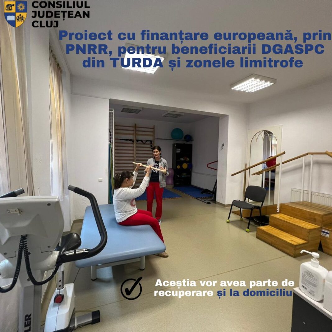 Consiliul Județean Cluj a aprobat în cadrul ședinței extraordinare de luni, 10 iulie a.c., proiectul de hotărâre privind „Dotarea Centrului de servicii de recuperare neuromotorie de tip ambulatoriu pentru persoane cu dizabilități Turda”, din cadrul Direcției Generale de Asistență Socială și Protecția Copilului Cluj (DGASPC Cluj), instituție aflată în subordinea forului administrativ județean.