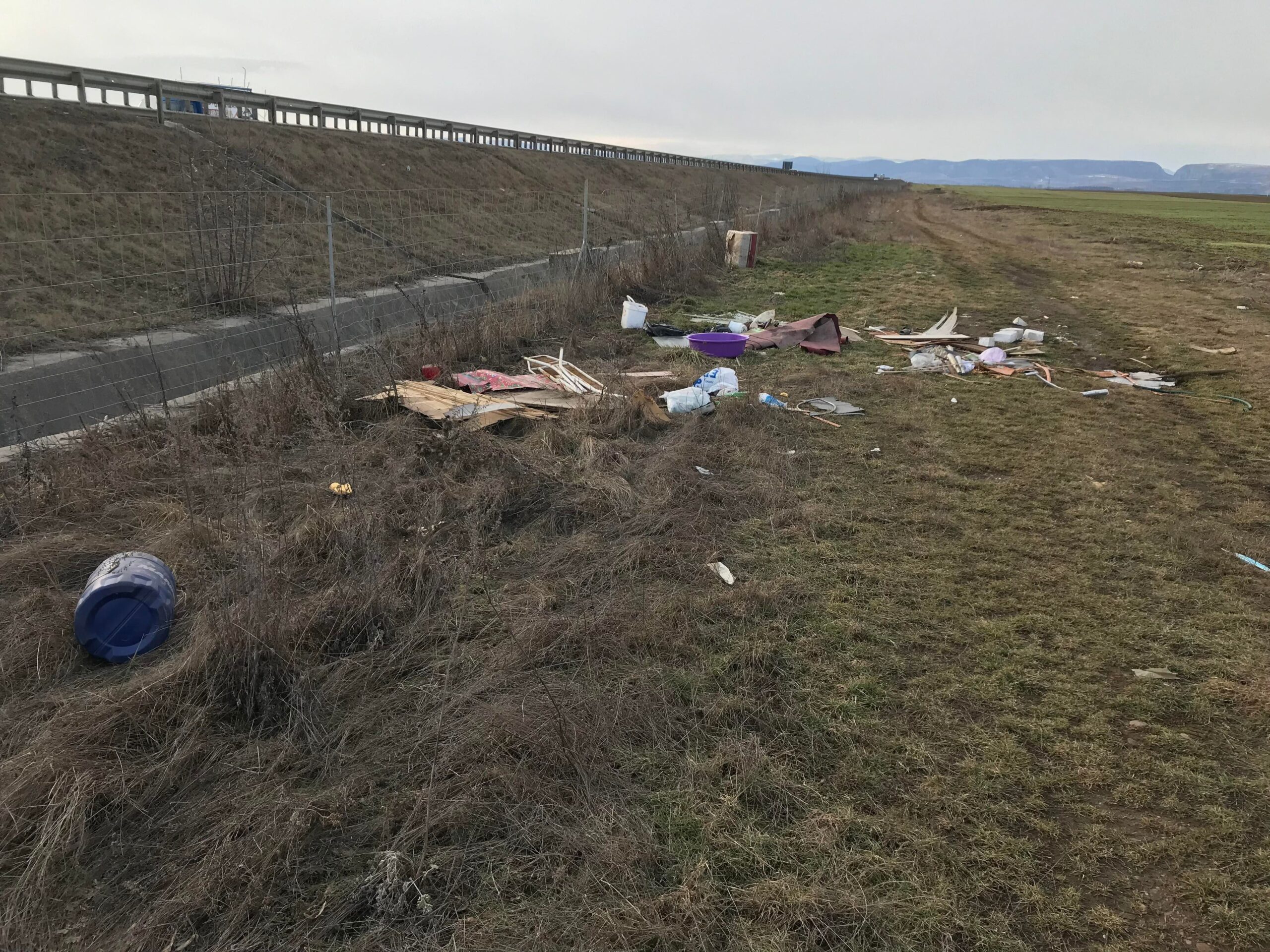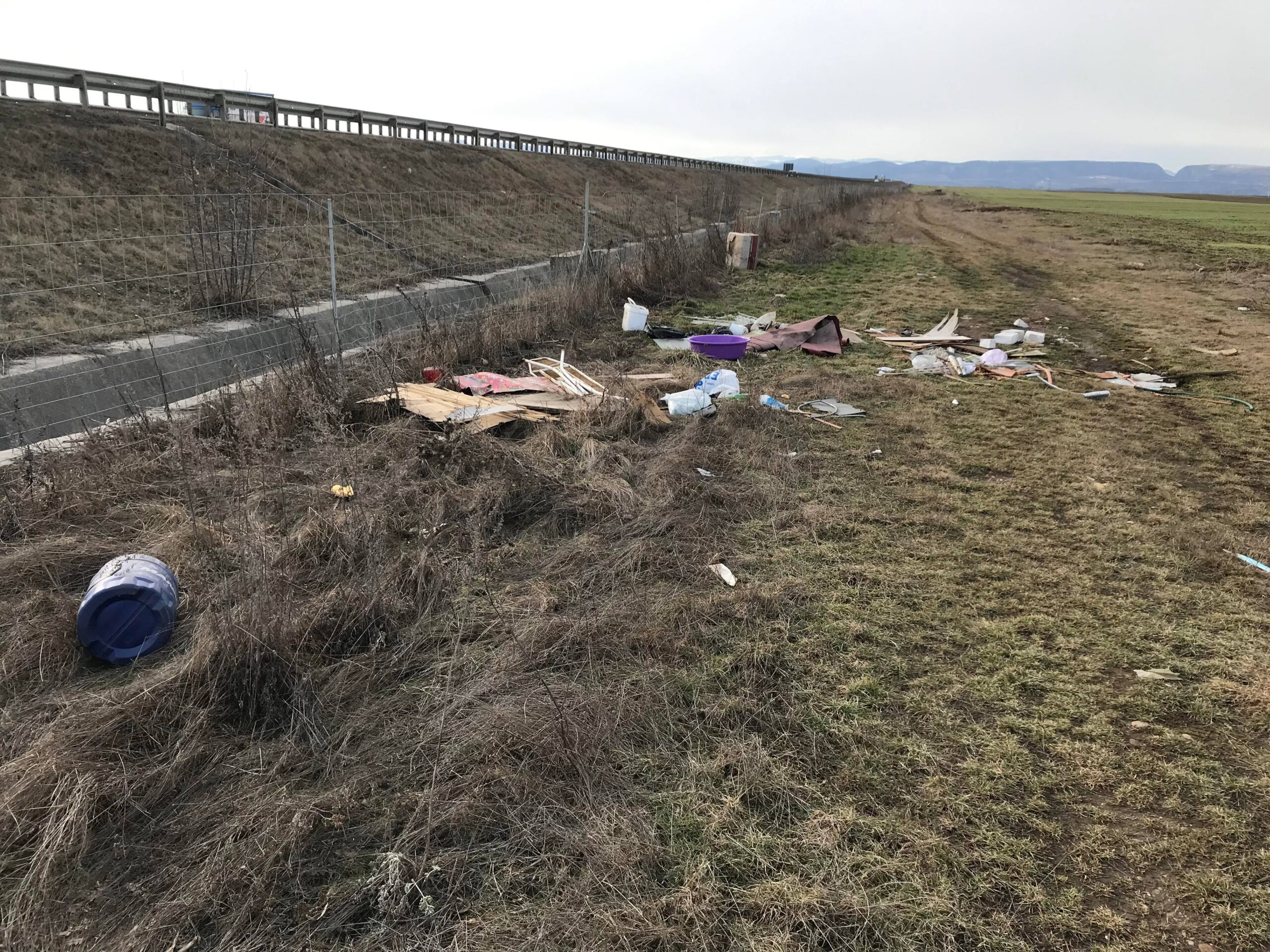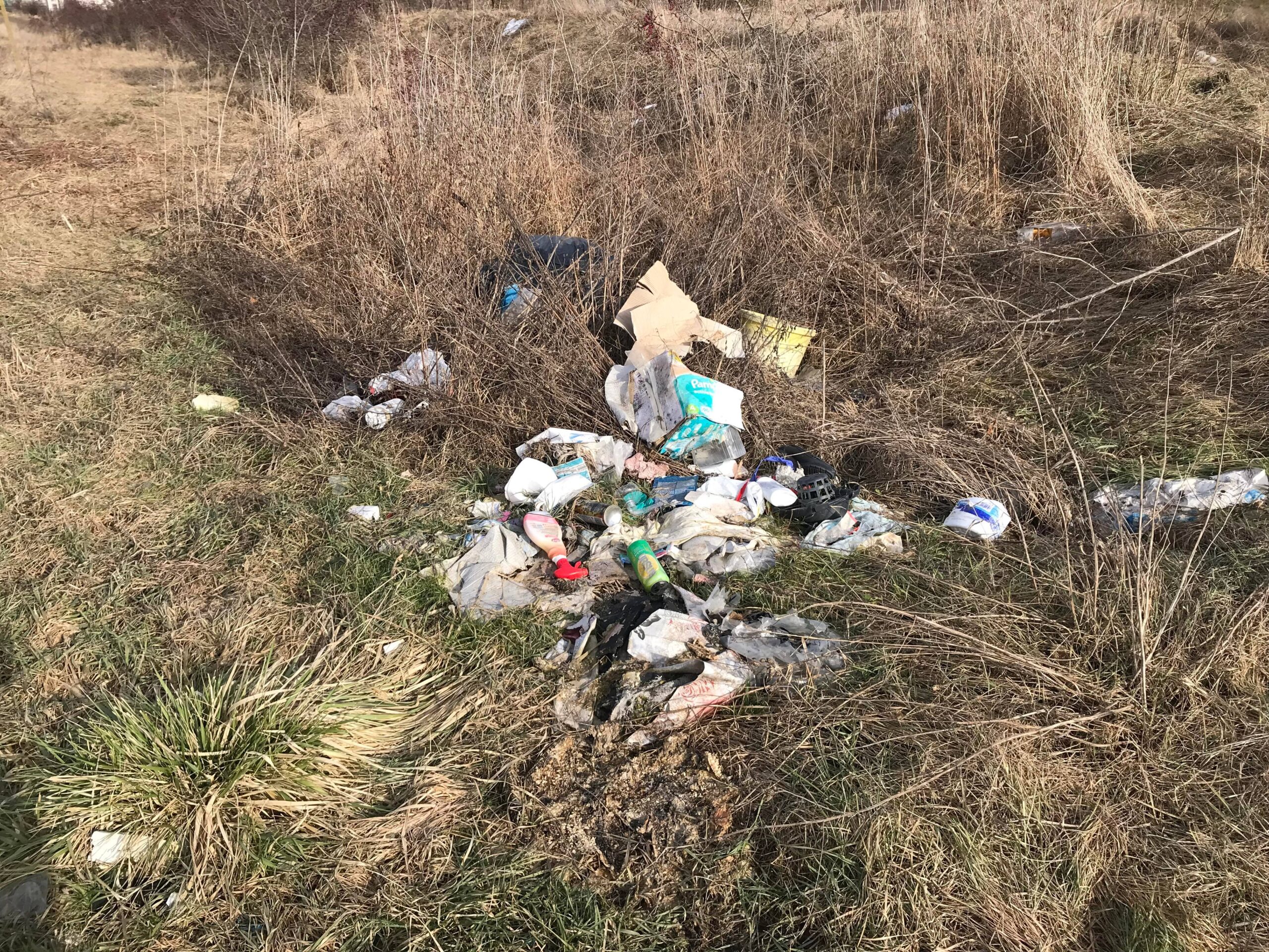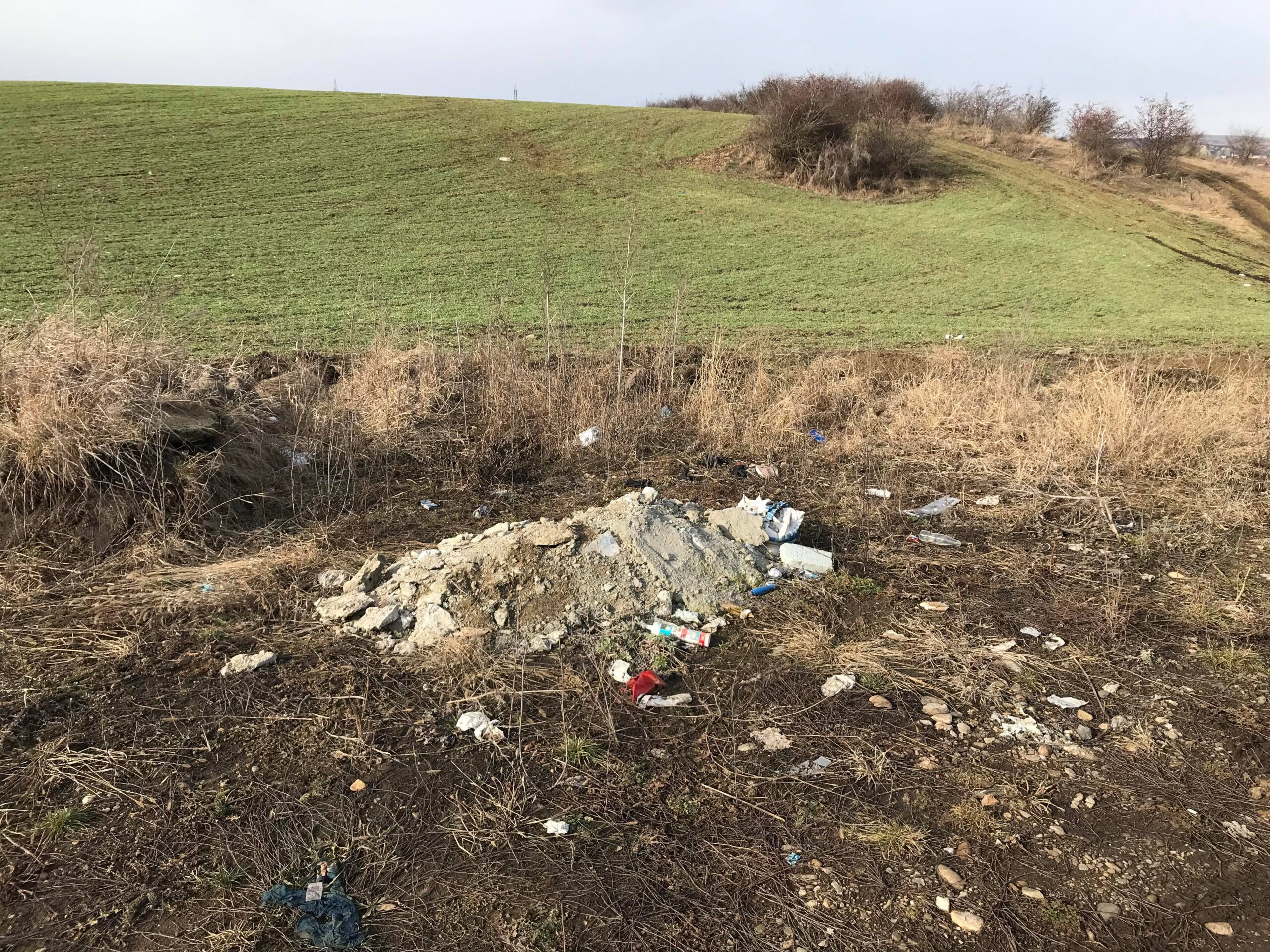 Este vorba despre drumul cimitirului, de la 110, acolo unde diverse persoane au depozitat deșeuri din construcții, sticle sparte și saci cu gunoaie.