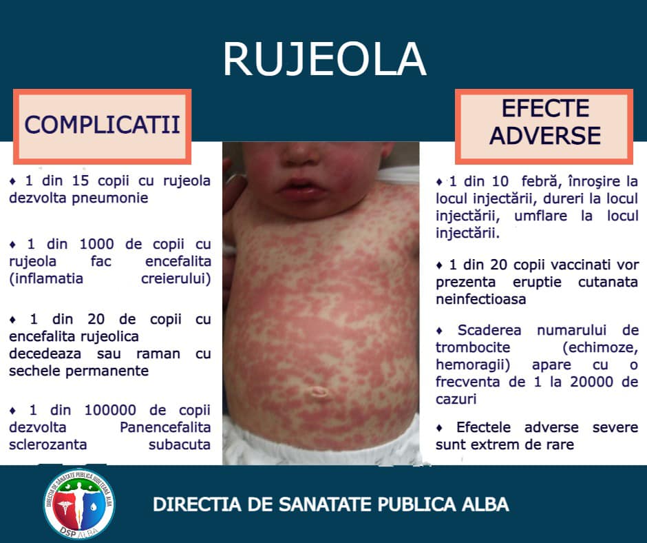 🌡️ După 12-14 zile, componenta anti-rubeolă poate cauza o erupție cutanată de scurtă durată însoțită sau nu de febră ușoara sau medie.