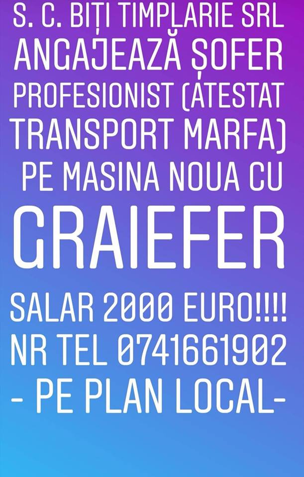 Societatea familiei Buțurcă pune la bătaie un salariu de 2000 de euro pentru un post de șofer profesionist pe autoutilitară cu craifer.