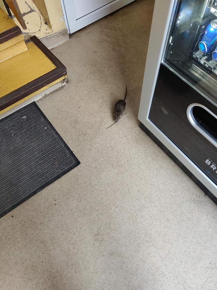 Copiii operați pe secția de Chirurgie din cadrul Clinicii Pediatrie 1 s-au întâlnit în luna noiembrie a anului trecut cu acest șobolan care vizita destul de des vitrina cu bunătăți de pe culoarul infect de la intrare.