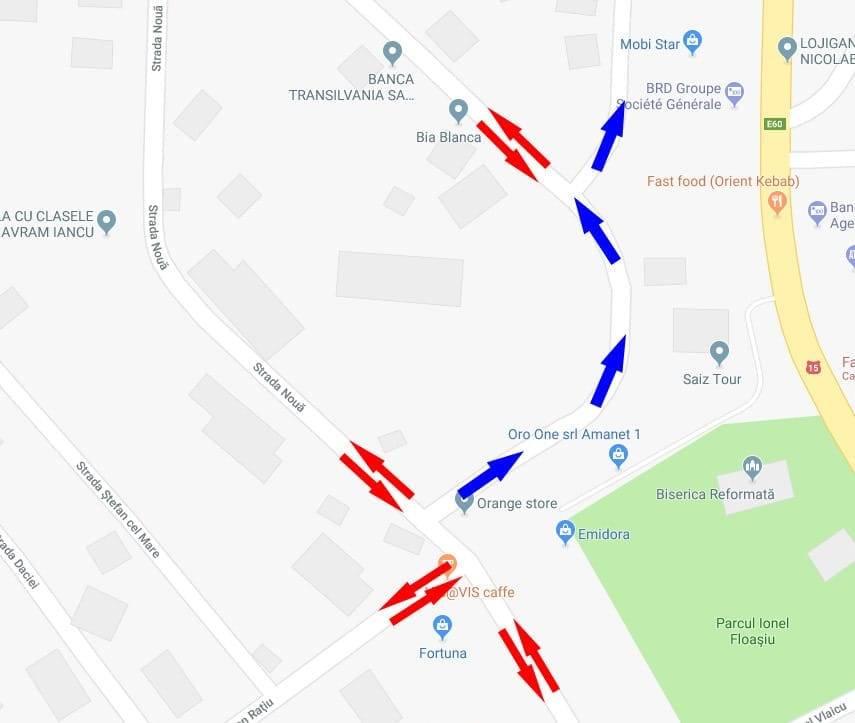 Astfel, autovehiculele se vor deplasa pe sensul de mers de la intersecția străzilor Piața Mihai Viteazu și strada Nouă (colțul blocului A142) până la intersecția străzilor Piața Mihai Viteazu și Andrei Mureșanu (după hotelul Tiver).