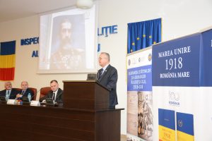 Conferința a fost susținută de domnul prof. univ. dr. Vasile Pușcaș, prof. univ. dr. Ioan Bolovan, dr. Ioan Drăgan, care au răspuns invitației noastre și au făcut o incursiune în timp, aducând în atenția publicului momentele care au marcat istoria țării noastre și a instituției Poliției. Lucrările prezentate în cadrul conferinței au fost următoarele: ,,Statul-Națiune, 1918-2018”, ,,Făurirea României Mari văzută în 3D: Democrație, Demnitate, Diplomație” și ,,Contribuții clujene la Marea Unire”.