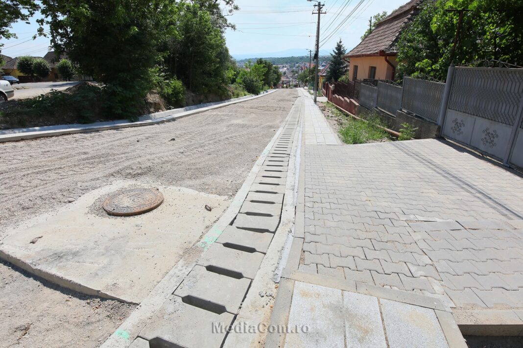 În prima fază au fost amenajate trotuarele, au fost construite rigolele carosabile, iar acum carosabilul străzii este modernizat cu dale, montate pe întreaga suprafață carosabilă.