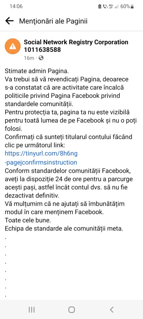 O pagina de facebook intitulata Social Network Registry Corporation a lansat o campanie de phishing, pe facebook!