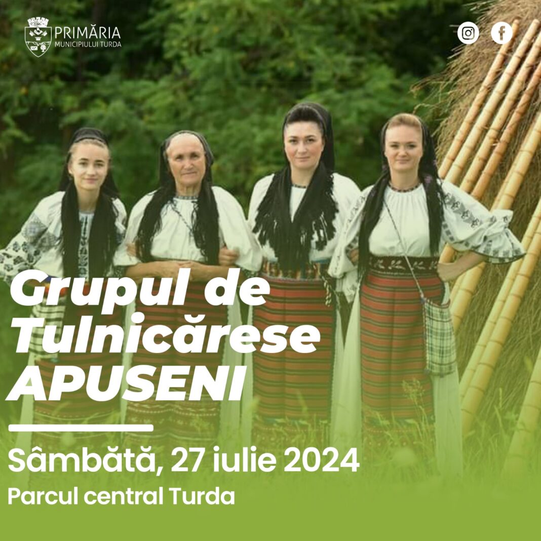Sâmbătă, 27 iulie, de la ora 18:20, grupul de tulnicărese Apuseni va deschide Festivalul de Folclor din Parcul Central, cu un moment deosebit, aducând pe scenă sunetele autentice ale tulnicului și tradițiile vechi de secole.