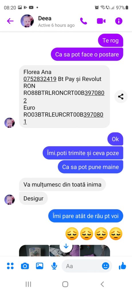 .Prima data mi-a scris în noiembrie ,pe acea vreme avea nevoie de 5000 € am mai făcut o postare atunci însă nu prea am emoționat multe persoane.