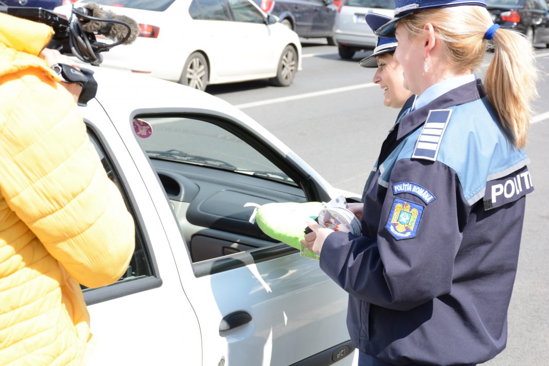 Polițiștii au distribuit materiale preventive participanților la trafic, părinților și copiilor întâlniți, materiale care le vor reaminti că respectarea regulilor de circulație este veriga principală în lanțul siguranței rutiere.