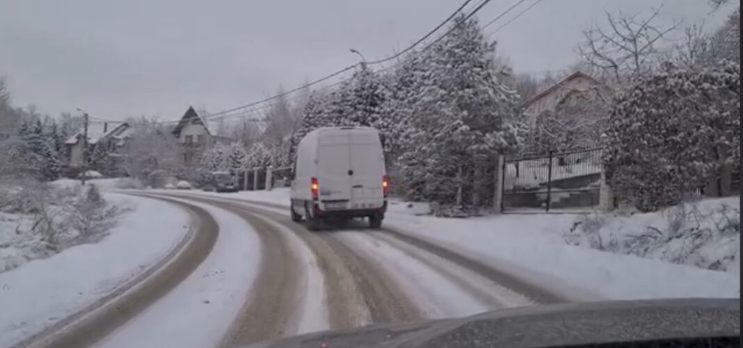 Dupa cum se vede in clipul de pe linkul de mai jos, soferii sunt obligati sa sanieze, in prima zi cu zapada consistenta din 2021.