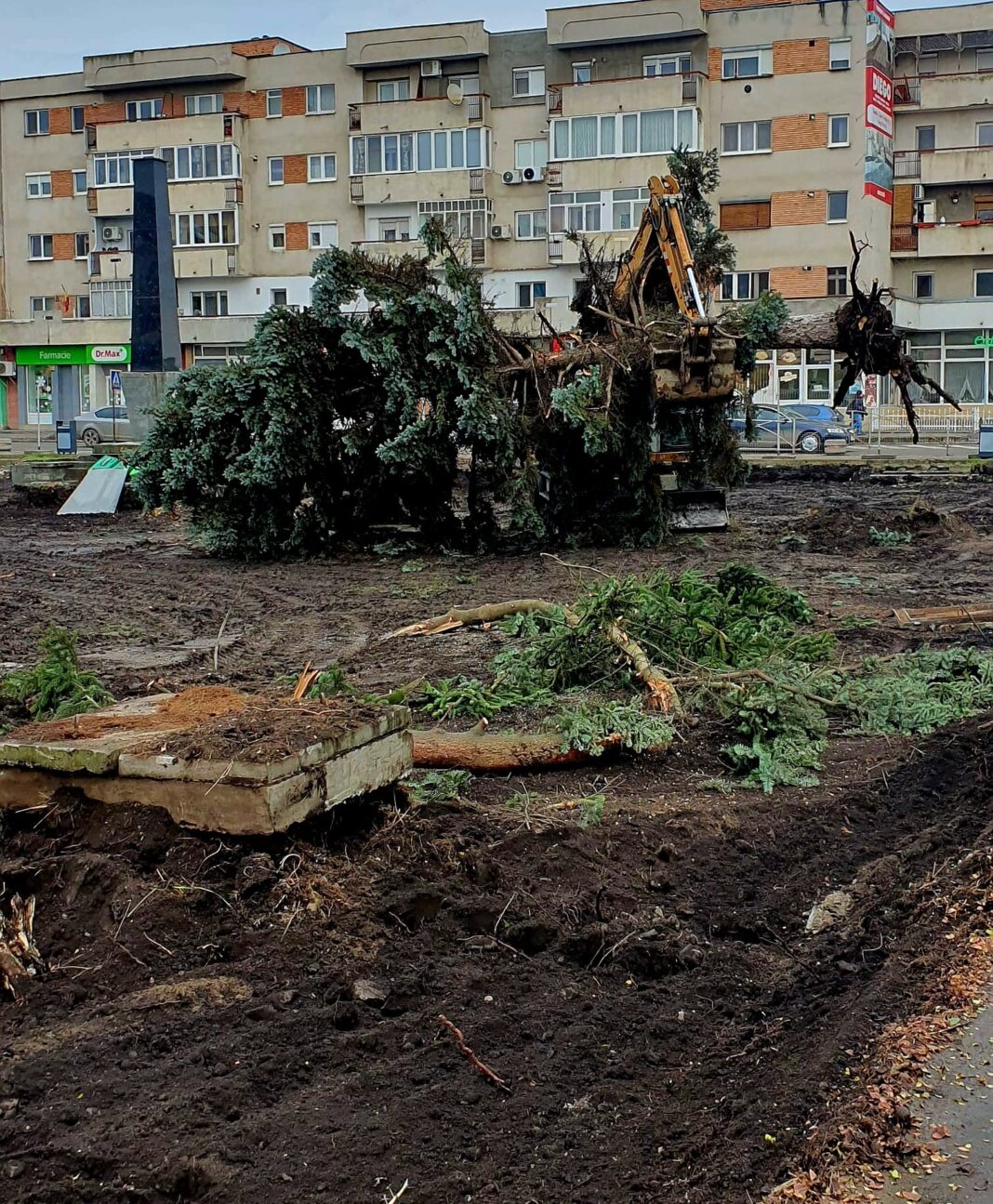 Cât privește „apocalipsa” și „rana sângerândă” … aceasta nu este adevărată, în condițiile în care majoritatea arborilor tineri din Parcul Central au fost relocați lângă magazinul Profi, după cum puteți vedea mai jos:
