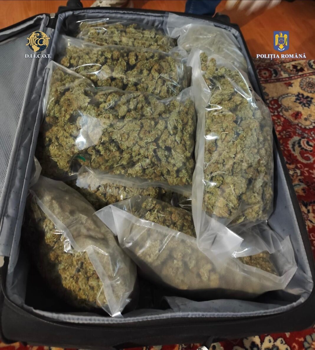În urma percheziției domiciliare efectuate, au fost descoperite și ridicate peste 13,3 kilograme de canabis (drog de risc) și aproximativ 10 grame de substanță cristalină 3-CMC (drog de mare risc), destinate comercializării, precum și alte mijloace de probă.